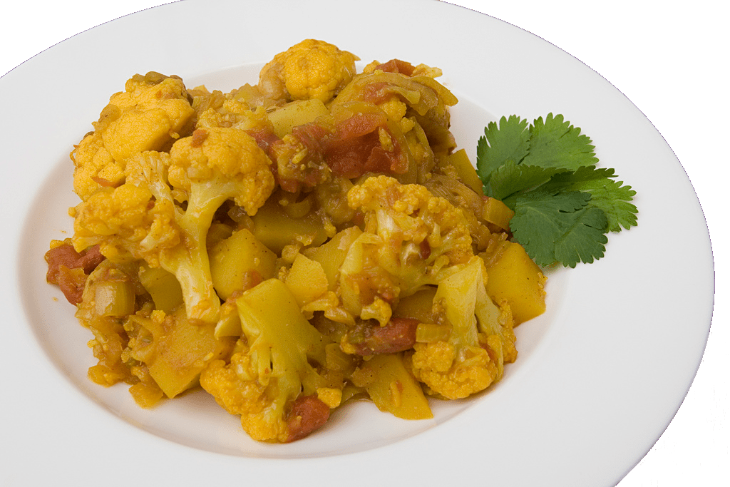 Aloo Gobi è in piatto vegetariano semplice e gustoso molto popolare della tradizione indiana. dove le patate e i cavolfiori vengono cotti con aglio, zenzero cipolla, pomodori e spezie. Ma si possono preparare anche con altri ingredienti, in base a ciò che si ha in casa. Questo piatto si sposa bene con Paratha, Roti e Bathura.